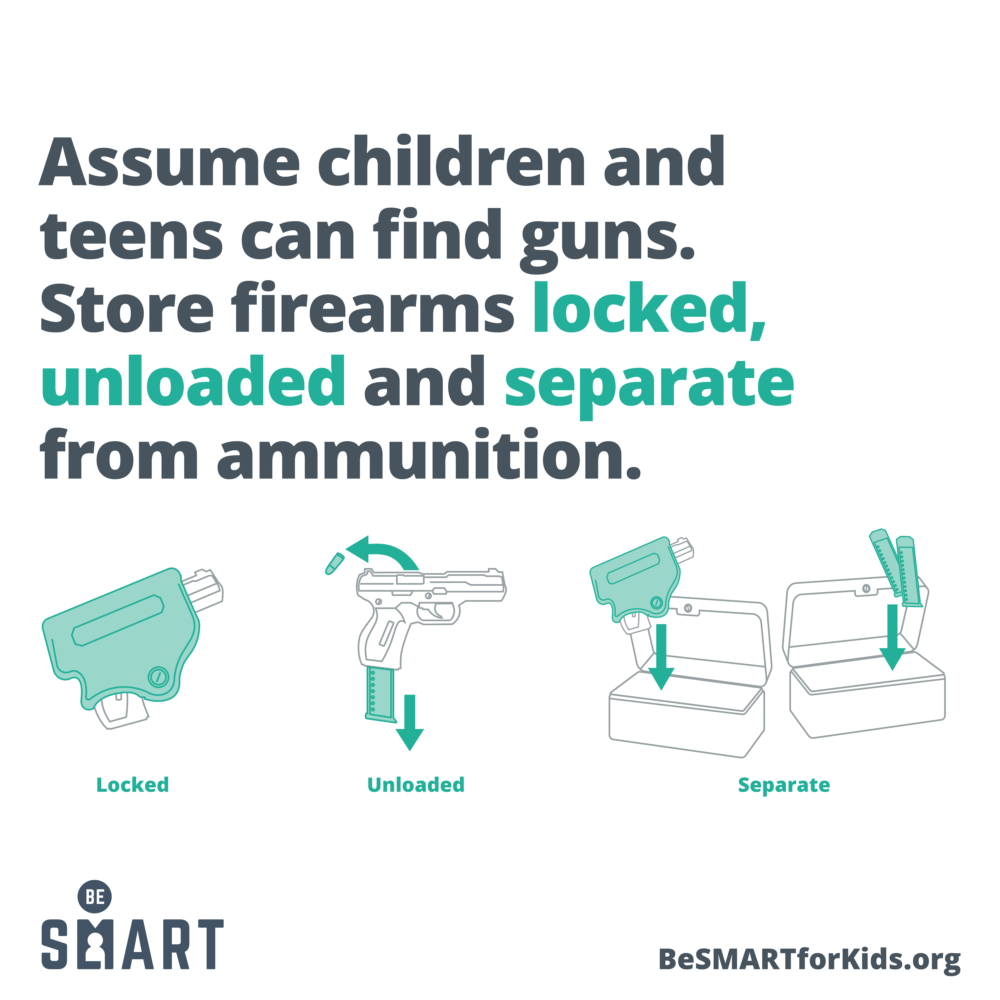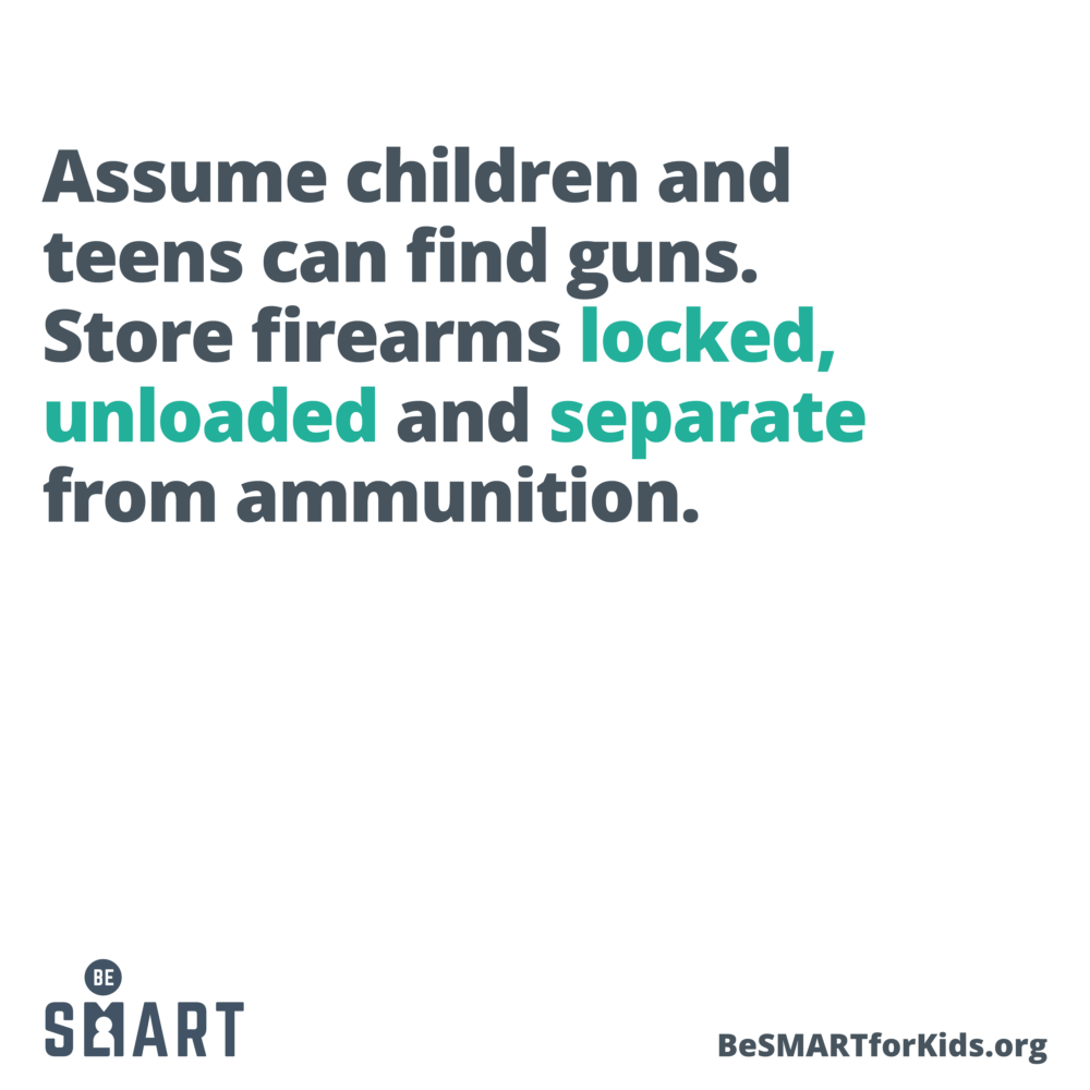 The Be SMART campaign was created to bring together all responsible adults to reduce suicides and the number of unintentional shootings that occur when children get a hold of an unsecured firearm.